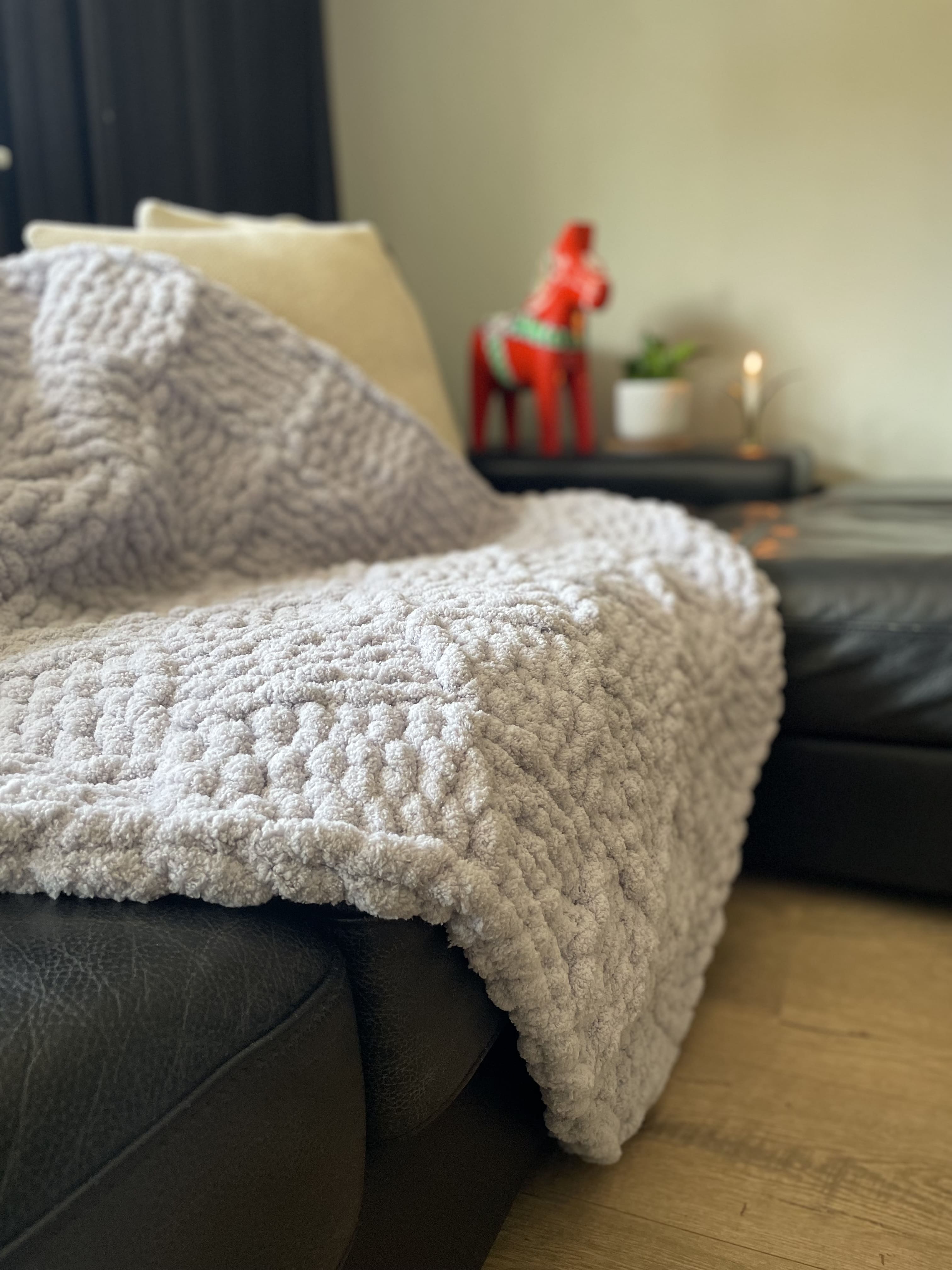 Grey Chunky Knit Blanket 150x90cm | Handmade Nordic Throw | Mysiga Style